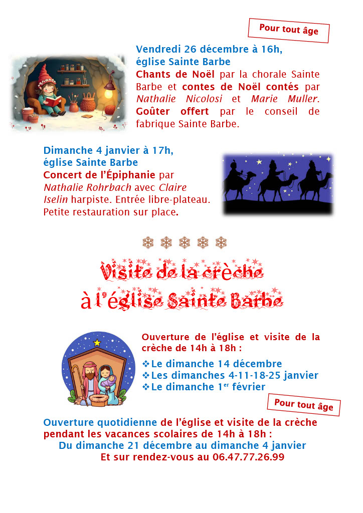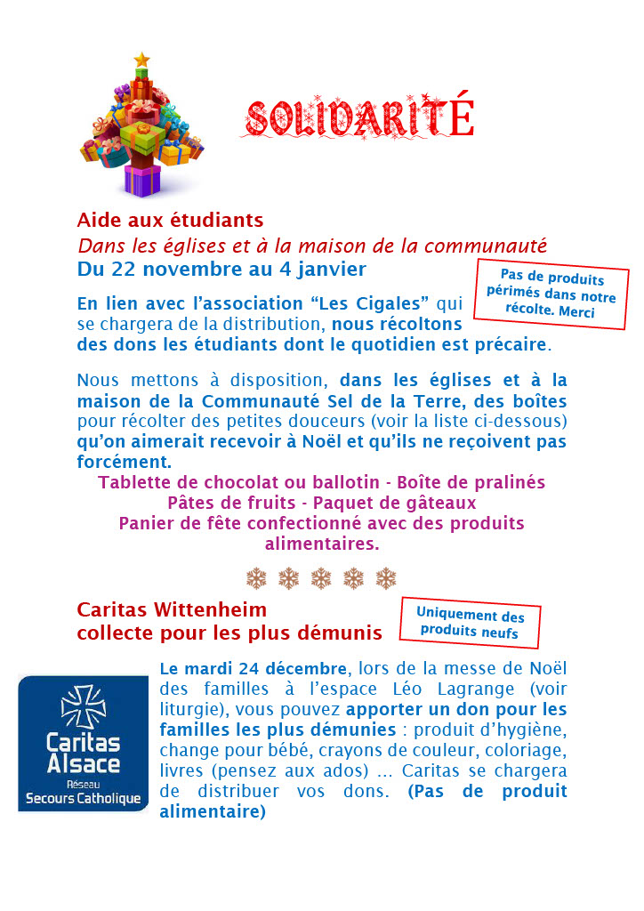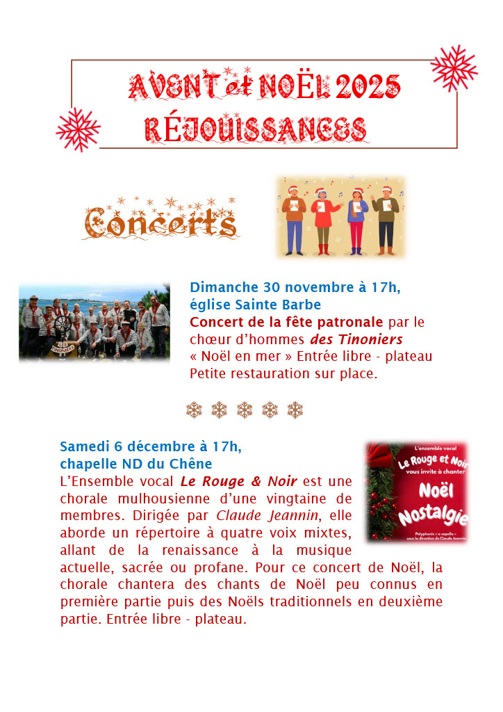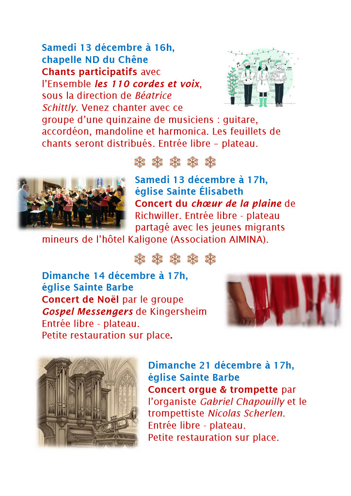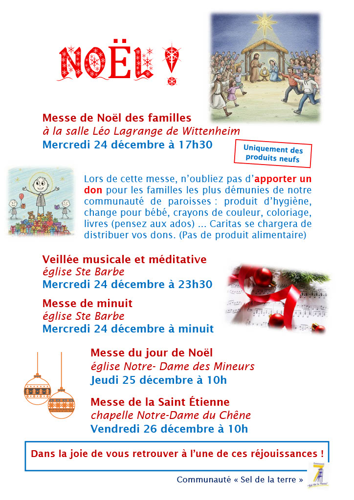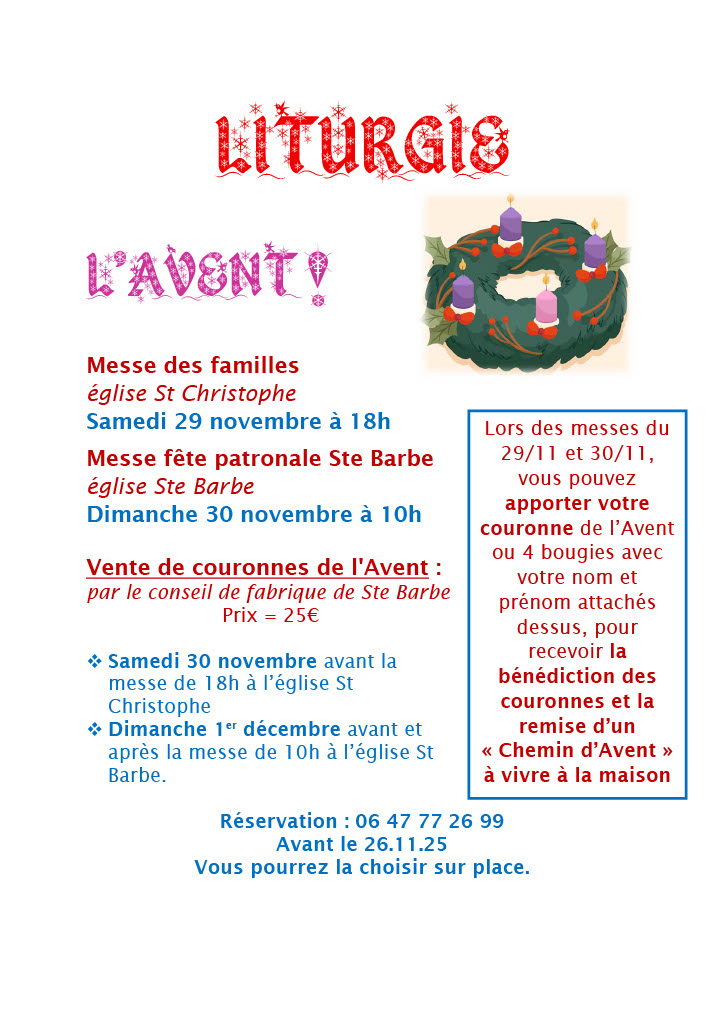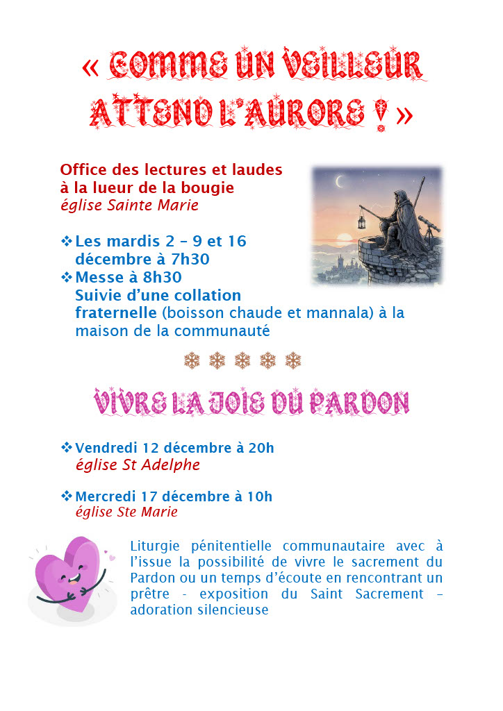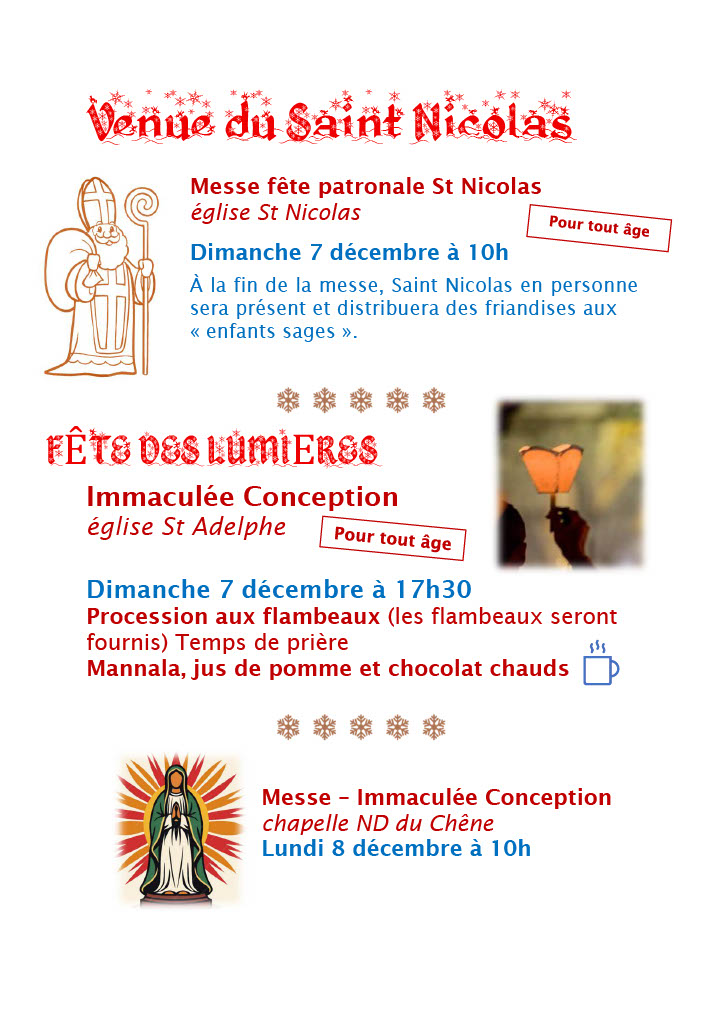 Concerts, visite de la crèche à l’église Ste Barbe, solidarité, la liturgie de l’Avent, la venue du St Nicolas, la Fête des lumières, l’Office des lectures et laudes, vivre la joie du pardon… Que de réjouissances pour préparer le chemin du Seigneur et aller vers Noël !
