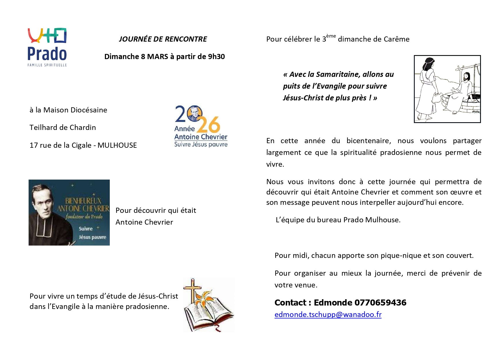 une journée de rencontre le DIMANCHE 8 MARS de 9h30 à 17h00 à la